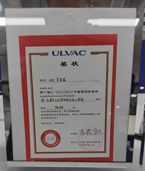 “愛發科自動化新一代真空RTR控制系統技術革新”課題在UL-GAIA(2023)中國集團報告會中榮獲“鼓勵獎”